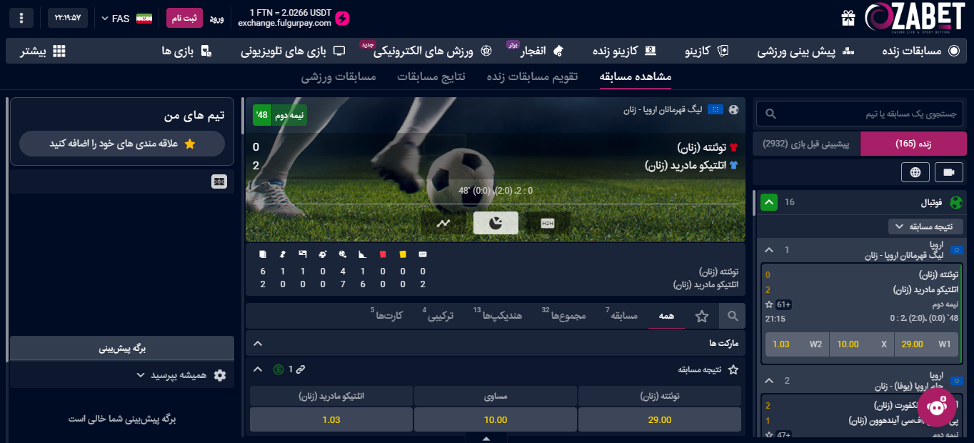 سایت شرط بندی ازا بت OzaBet از سایت های معتبر شرط بندی و پیش بینی می باشد که طیف گسترده ای از بازی های زنده کازینو و هزاران رویداد ورزشی جهانی را در اختیار شما قرار می دهد.